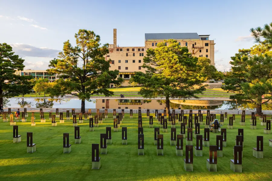 The Oklahoma City National Memorial stands as a solemn and reverent tribute in Oklahoma City, honoring the memory of the victims, survivors, rescuers, and all those touched by the tragic Oklahoma City bombing on April 19, 1995. Located on the hallowed grounds of the former Alfred P. Murrah Federal Building, which was destroyed in the devastating event, the memorial serves as a place of reflection and remembrance. It occupies the historic site on NW 5th Street, nestled between N. Robinson Avenue and N. Harvey Avenue, where the world was forever changed. This poignant site allows visitors to pay their respects and learn about the events that unfolded on that fateful day.